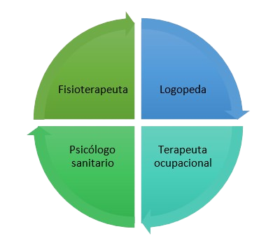 Las valoraciones y tratamientos son llevadas a cabo por nuestro equipo multidisciplinar, formado por fisioterapeutas, logopedas, terapeutas ocupacionales y psicólogos sanitarios